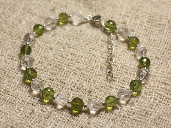 At a Great Price925 sterling Silver Galaxy Jewelry Silver Helling 6mm Stracking Green & White Peridot & Crystal Bracelet Round, Faceted 7" for mens, womens, gf, bf & Adult.