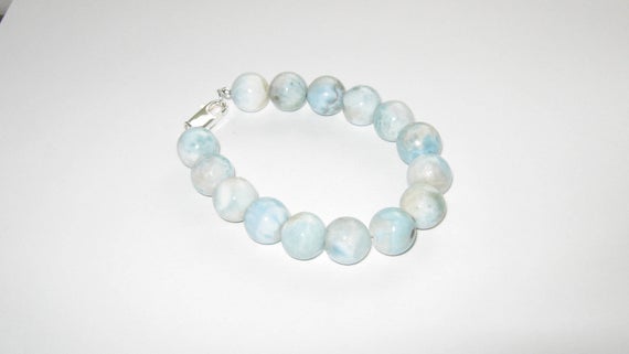 At a Great Price925 sterling Silver good luck gift 12mm stacking Sky Blue Larimar Bracelet Round, Smooth 7.5" for mens, womens, gf, bf & Adult.