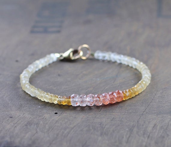 At a Great Price925 sterling silver good luck gift 3.5mm Multi Colour Sunstone & Citrine stacking Bracelet Rondelle, Faceted 18cm for mens, womens, gf, bf and adults.