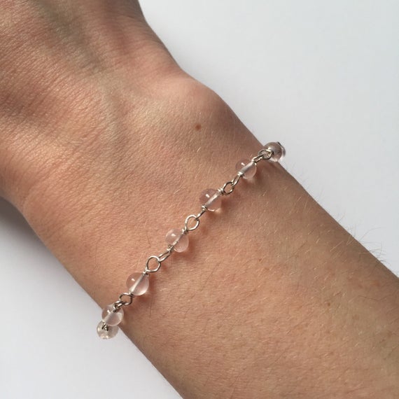 925 sterling Silver good luck gift 4.5mm stacking Pink ROSE QUARTZ Bracelet Round, Smooth 7" for mens, womens.