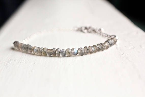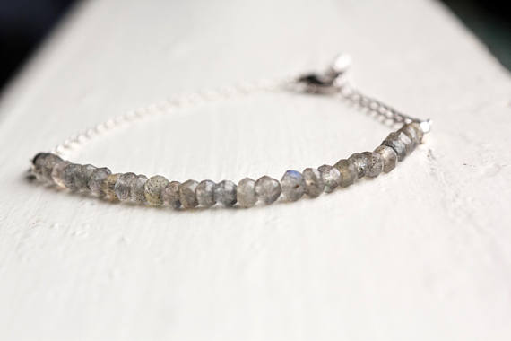 At a Great Price925 sterling Silver good luck gift 4mm stacking Gray Labradorite Bracelet Rondelle, Faceted 7" for mens, womens, gf, bf & Adult.