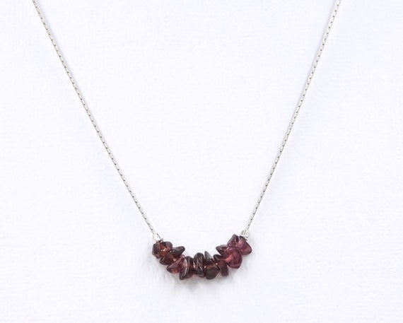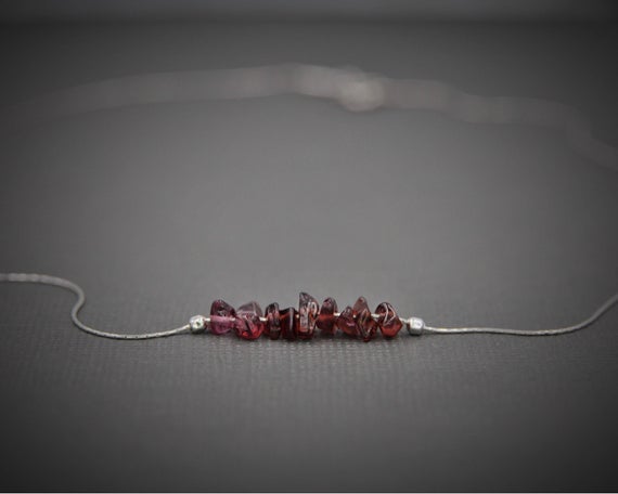At a Great Price925 sterling Silver good luck gift 4x6mm stacking Red Garnet Necklace Chips, Smooth 16" for mens, womens, gf, bf & Adult.