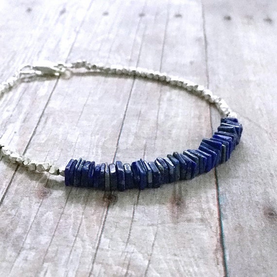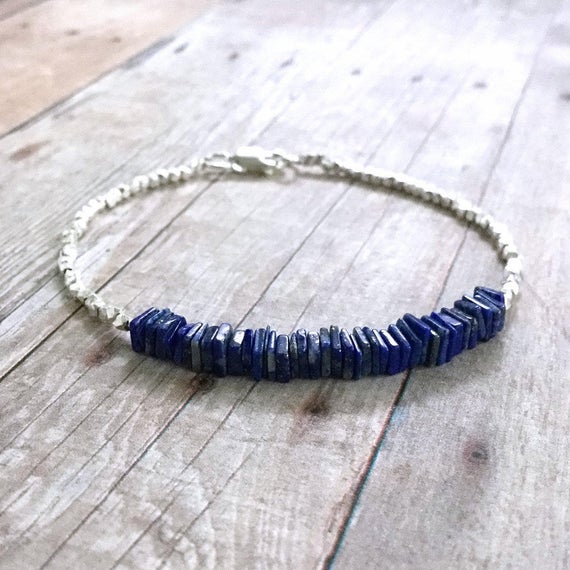 At a Great Price925 sterling silver good luck gift 5mm Blue Lapis Lazuli stacking Bracelet Square, Smooth 18cm for mens, womens, gf, bf and adults.