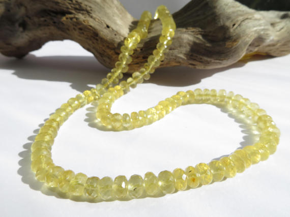 At a Great Price925 sterling Silver good luck gift 5mm stacking Yellow Yellow Beryl Necklace Rondelle, Faceted 17" for mens, womens.