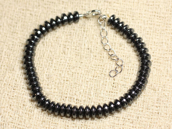At a Great Price925 sterling Silver good luck gift 6mm stacking Silver Hematite Bracelet Rondelle, Smooth 7" for mens, womens, gf, bf & Adult.