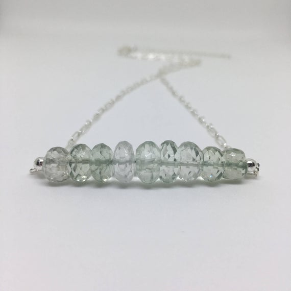 At a Great Price925 sterling Silver good luck gift 7x4-9x5mm stacking Green Green Amethyst Necklace Rondelle, Faceted 17" for mens, womens, gf, bf & Adult.