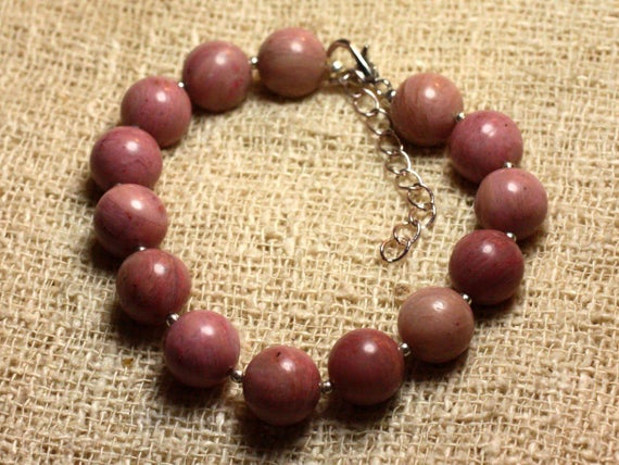 At a Great Price925 sterling Silver good luck gift Silver Helling 10mm Stracking Pink Rhodonite Bracelet Round, Smooth 7.5" for mens, womens, gf, bf & Adult.