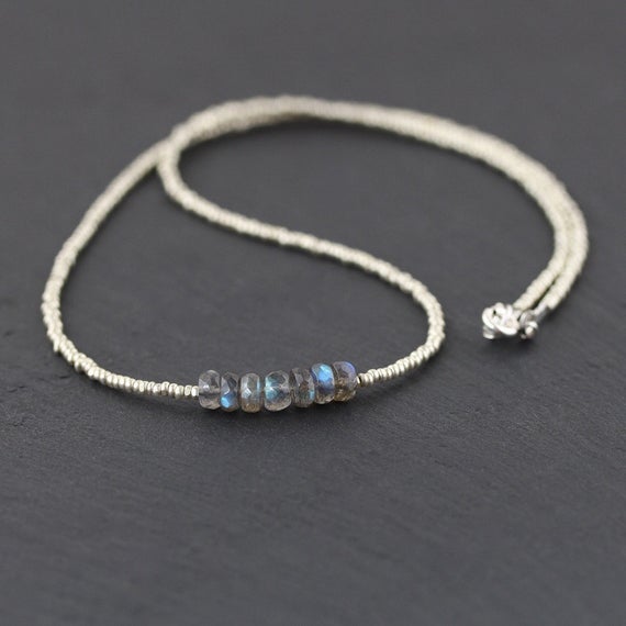 At a Great Price925 sterling Silver good luck gift Silver Helling 6MM stacking Gray Labradorite Necklace Rondelle, Faceted 16" for mens, womens, gf, bf & Adult.