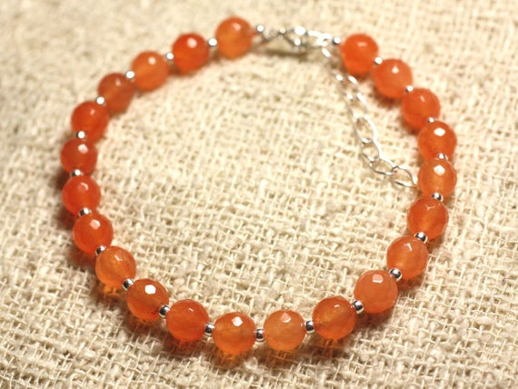 At a Great Price925 sterling Silver good luck gift Silver Helling 6mm Stracking Orange Orange Jade Bracelet Round, Faceted 7" for mens, womens, gf, bf & Adult.