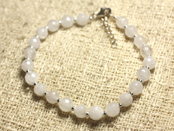 At a Great Price925 sterling Silver good luck gift Silver Helling 6mm Stracking White White Jade Bracelet Round, faceted 7" for mens, womens, gf, bf & Adult.