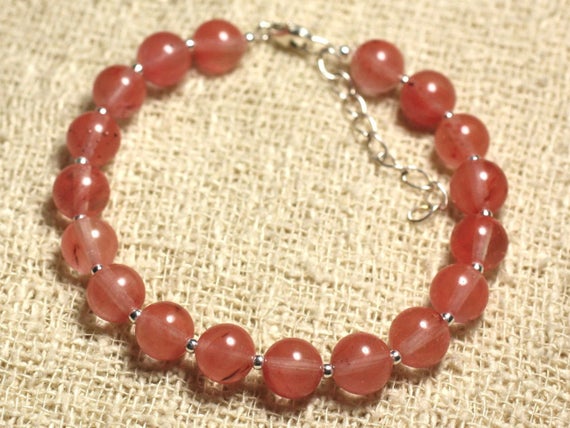 At a Great Price925 sterling Silver good luck gift Silver Helling 8mm stacking Pink cherry Quartz Bracelet Round, Smooth 7" for mens, womens, gf, bf & Adult.