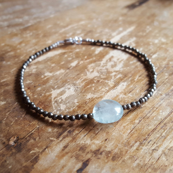 At a Great Price925 sterling silver Grounding 12-2mm Multi Colour Aquamarine & Hematite stacking Bracelet Round, Faceted 18cm for mens, womens, gf, bf and adults.