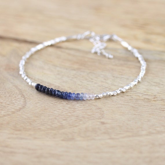 At a Great Price925 sterling Silver Grounding 3mm stacking Blue Blue Sapphire Bracelet Rondelle, Faceted 7" for mens, womens, gf, bf & Adult.