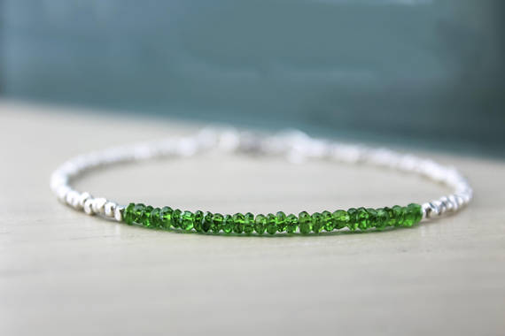 At a Great Price925 sterling Silver Grounding 3mm stacking Green CHROME DIOPSIDE Bracelet Rondelle, Faceted 7" for mens, womens.