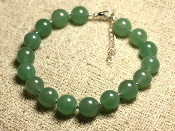 At a Great Price925 sterling Silver Grounding Silver Helling 10mm Stracking Green Aventurine Bracelet Round, Smooth 7.5" for mens, womens, gf, bf & Adult.