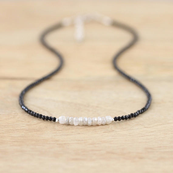 At a Great Price925 sterling Silver Grounding Silver Helling 4mm stacking Black & White White Silverite & Black Spinel Necklace Round & Rondelle, Faceted 16" for mens, womens, gf, bf & Adult.