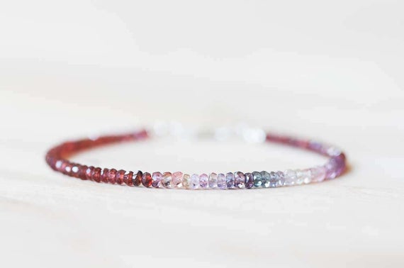 At a Great Price925 sterling silver Handmade Beaded 3-3.5mm Multi Colour Red Garnet & Multi Spinel stacking Bracelet Rondelle, Faceted 18cm for mens, womens, gf, bf and adults.