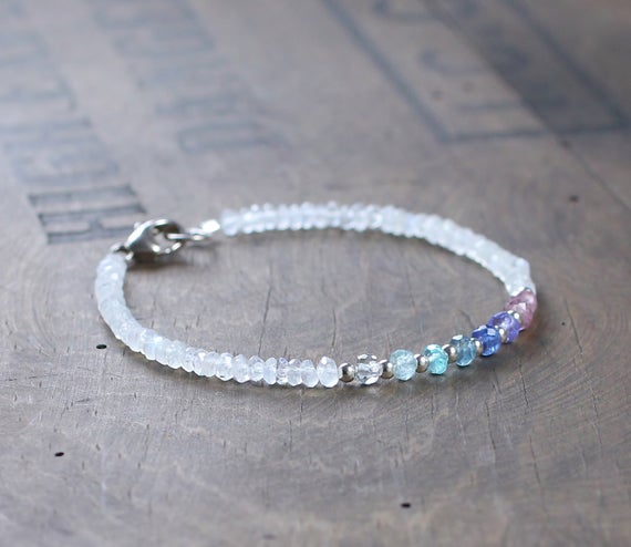 At a Great Price925 sterling silver Handmade Beaded 3.5mm Multi Colour Multicolor Gemstone & Moonstone stacking Bracelet Rondelle, Faceted 18cm for mens, womens, gf, bf and adults.