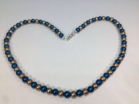 At a Great Price925 sterling Silver Handmade Beaded 4-5mm stacking Blue & Gold Blue and Gold Pearl Necklace Round, Smooth 16" for mens, womens, gf, bf & Adult.