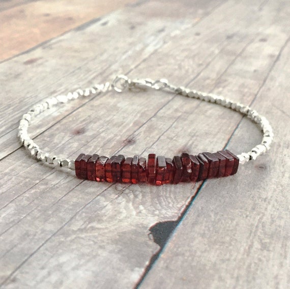 At a Great Price925 sterling silver Handmade Beaded 4-6mm Red Natural Garnet stacking Bracelet Square, Smooth 18cm for mens, womens, gf, bf and adults.