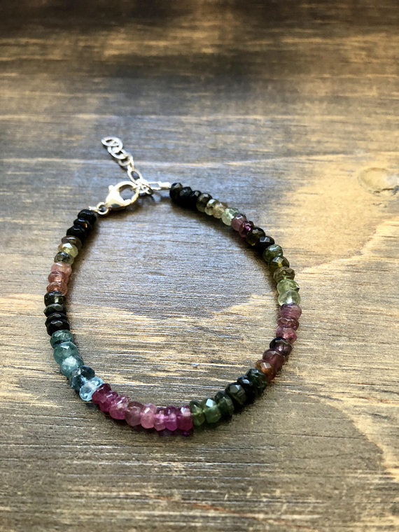 At a Great Price925 sterling Silver Handmade Beaded 4mm stacking Multi Tourmaline Bracelet Rondelle, Faceted 7" for mens, womens, gf, bf & Adult.