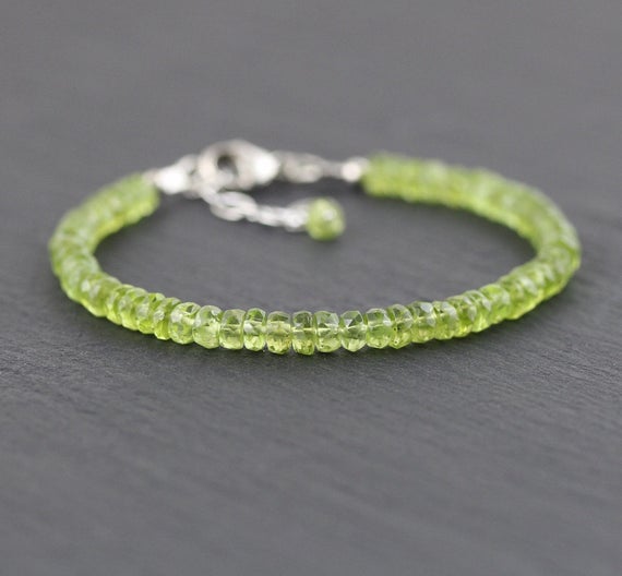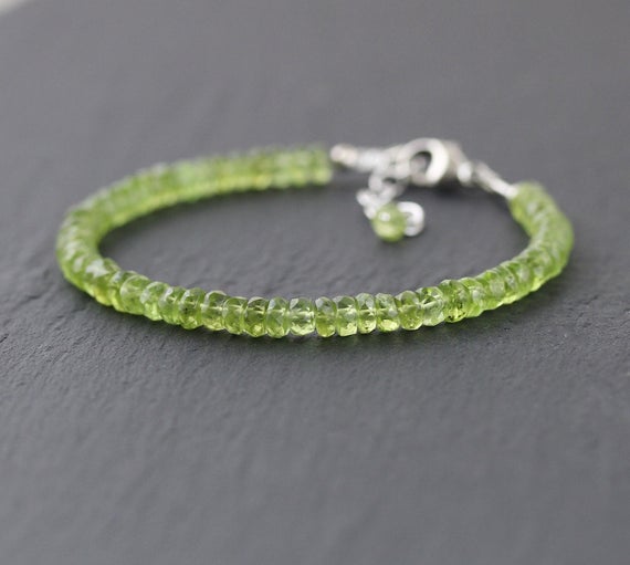 At a Great Price925 sterling Silver Handmade Beaded 5mm stacking Green Peridot Bracelet Rondelle, Faceted 7" for mens, womens, gf, bf & Adult.