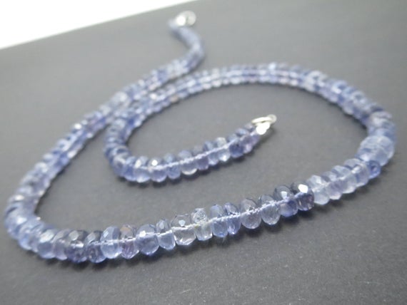 At a Great Price925 sterling Silver Handmade Beaded 6mm stacking Blue Iolite Necklace Rondelle, Faceted 17" for mens, womens.