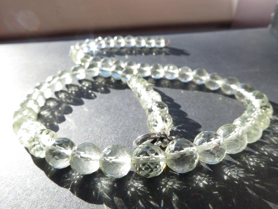 At a Great Price925 sterling Silver Handmade Beaded 8mm stacking Green Prasiolite green amethyst Necklace Round, Faceted 17" for mens, womens.