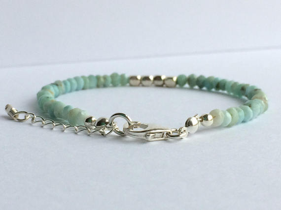 At a Great Price925 sterling Silver Handmade Beaded Silver Helling 4mm stacking Blue Larimar Bracelet Round, Faceted 7" for mens, womens, gf, bf & Adult.