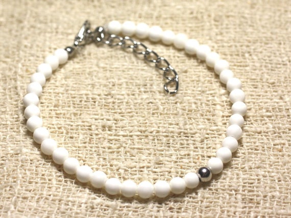 At a Great Price925 sterling Silver Handmade Beaded Silver Helling 4MM stacking White mother of pearl Bracelet Round, Smooth 7" for mens, womens, gf, bf & Adult.