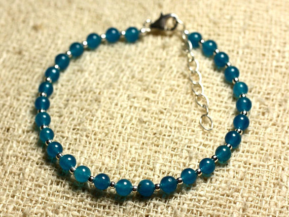 At a Great Price925 sterling Silver Handmade Beaded Silver Helling 4mm Stracking Blue Jade blue Bracelet Round, Smooth 7" for mens, womens, gf, bf & Adult.