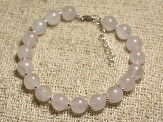 At a Great Price925 sterling Silver Handmade Beaded Silver Helling 8mm stacking Pink Pink Quartz Bracelet Round, Smooth 7" for mens, womens, gf, bf & Adult.