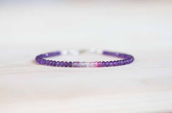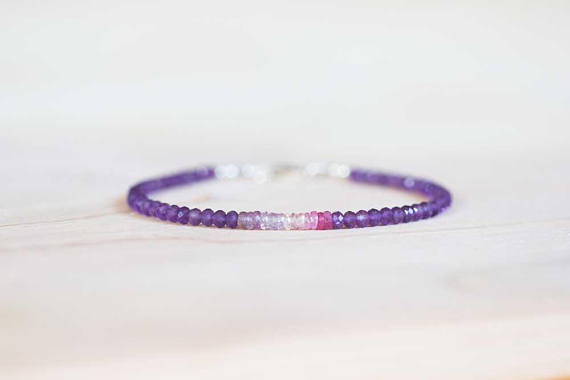 At a Great Price925 sterling silver Jewelry Energy 3-3.5mm Multi Colour Amethyst & Sapphire stacking Bracelet Rondelle , Faceted 18cm for mens, womens, gf, bf and adults.