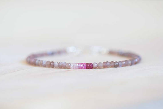 At a Great Price925 sterling silver Jewelry Energy 3-3.5mm Multi Colour Chocolate Moonstone & Pink Sapphire stacking Bracelet Rondelle , Faceted 18cm for mens, womens, gf, bf and adults.