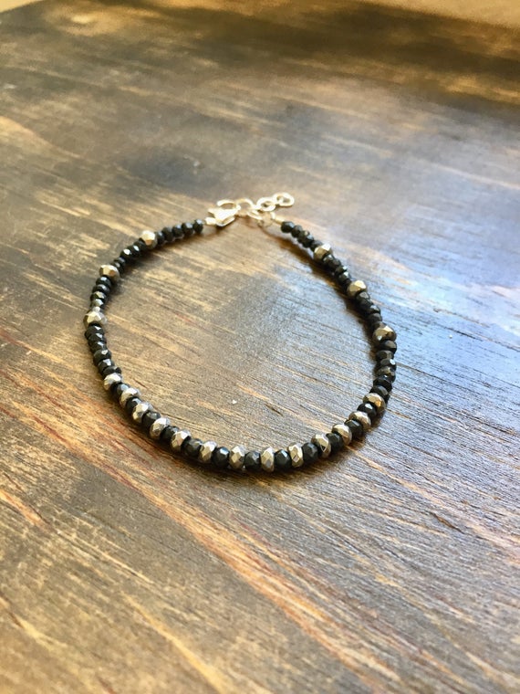 At a Great Price925 sterling Silver Jewelry Energy 3-4mm stacking Black Black Spinel, Hematite Bracelet Rondelle, Faceted 7" for mens, womens, gf, bf & Adult.