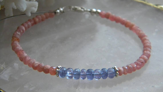 At a Great Price925 sterling Silver Jewelry Energy 3.5MM stacking Blue & Pink Tanzanite & Rhodochrosite Bracelet Rondelle, Faceted 7" for mens, womens, gf, bf & Adult.