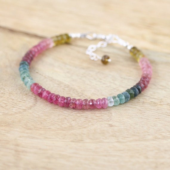 At a Great Price925 sterling Silver Jewelry Energy 4-4.5mm stacking Multi Watermelon Tourmaline Bracelet Rondelle, Faceted 7" for mens, womens, gf, bf & Adult.