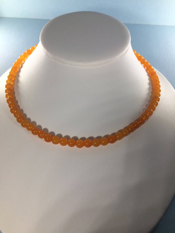 At a Great Price925 sterling Silver Jewelry Energy 4-5mm stacking Orange Orange Aventurine Necklace Round, Smooth 16" for mens, womens, gf, bf & Adult.