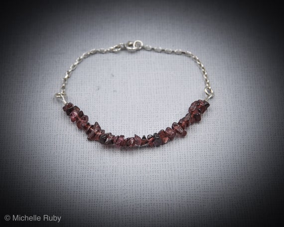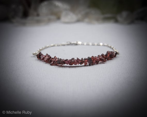 925 sterling Silver Jewelry Energy 4x6mm stacking Red Garnet Bracelet Chips, Faceted 7" for mens, womens, gf, bf & Adult.