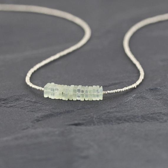 At a Great Price925 sterling Silver Jewelry Energy 5-5.5mm stacking Green Prehnite Heishi Necklace Square, Faceted 16" for mens, womens, gf, bf & Adult.