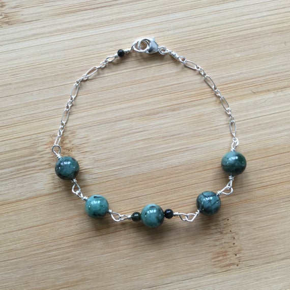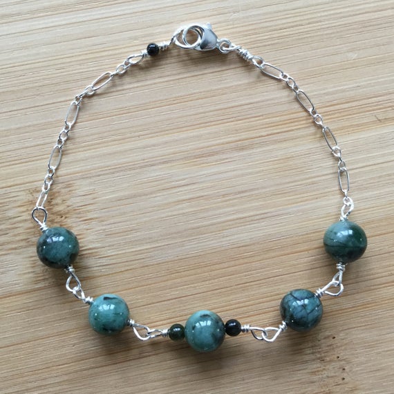 At a Great Price925 sterling Silver Jewelry Energy 6.5mm stacking Green Natural Emerald Bracelet Round, Smooth 7" for mens, womens.