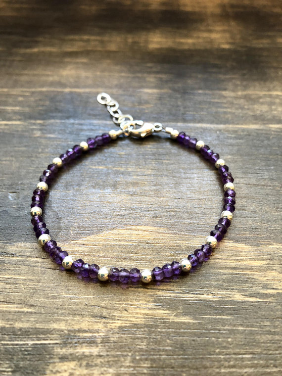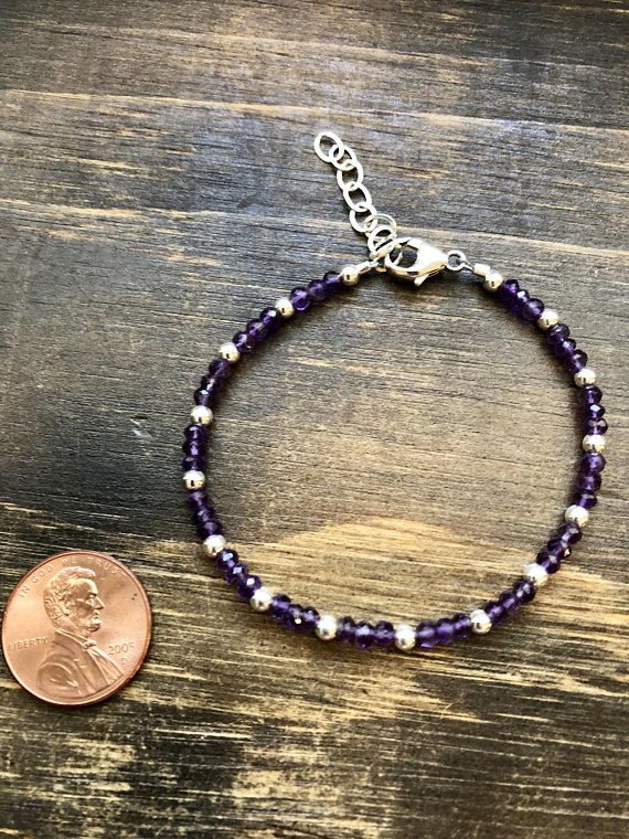 At a Great Price925 sterling Silver Jewelry Energy Silver Helling 3-4mm stacking Purple Amethyst Bracelet Rondelle, Faceted 7" for mens, womens, gf, bf & Adult.