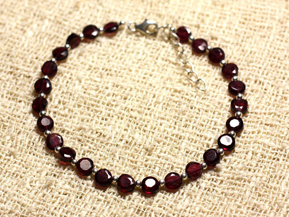 At a Great Price925 sterling Silver Jewelry Energy Silver Helling 4.5mm Stracking Red Garnet Bracelet Coin, Faceted 7" for mens, womens, gf, bf & Adult.