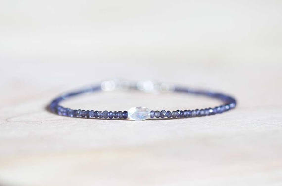 At a Great Price925 sterling silver love beach youth 2-2.5mm Multi Colour Iolite & Rainbow Moonstone stacking Bracelet Round, Faceted 18cm for mens, womens, gf, bf and adults.