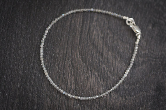 At a Great Price925 sterling Silver love beach youth 2.2mm stacking Gray Labradorite Bracelet Rondelle, Faceted 7" for mens, womens.