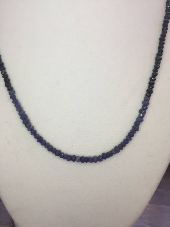 At a Great Price925 sterling Silver love beach youth 3-4mm stacking black & Blue Iollite, Black Spinel Necklace Rondelle, Faceted 18" for mens, womens, gf, bf & Adult.