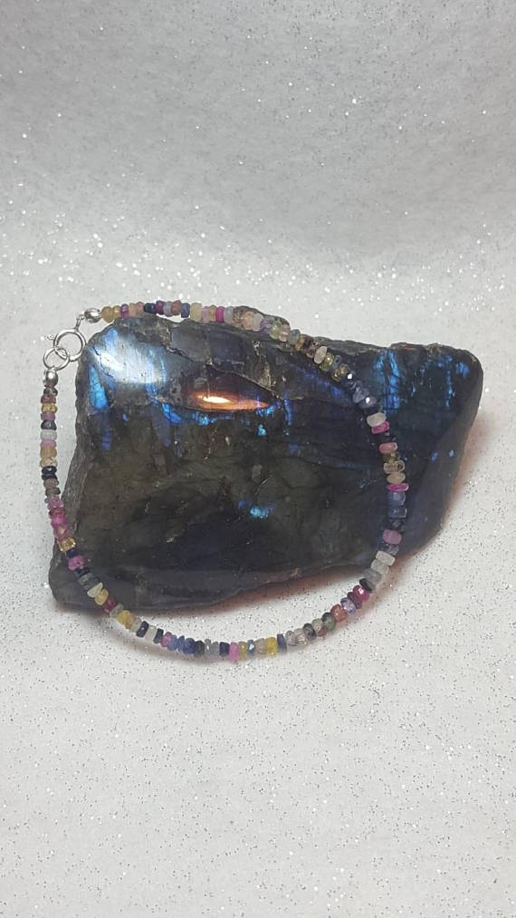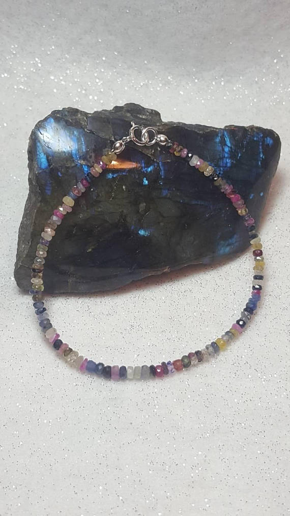 At a Great Price925 sterling Silver love beach youth 3-4mm stacking Multi Sapphire Bracelet Rondelle, Faceted 7" for mens, womens, gf, bf & Adult.
