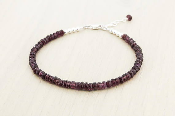 At a Great Price925 sterling Silver love beach youth 4mm stacking Red Garnet Bracelet Rondelle, Faceted 7" for mens, womens.