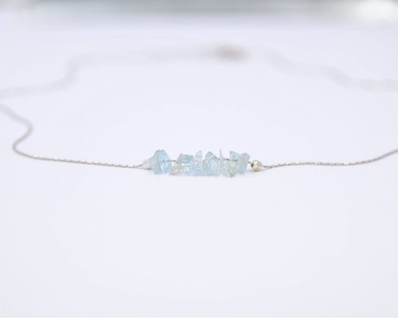 At a Great Price925 sterling Silver love beach youth 4x6mm stacking Aqua Aquamarine Necklace Chips, Smooth 16" for mens, womens, gf, bf & Adult.
