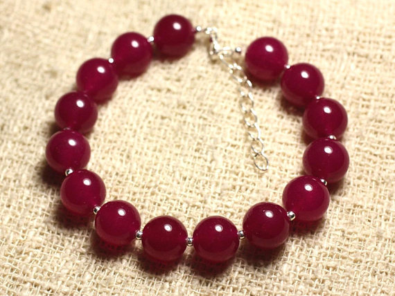 At a Great Price925 sterling Silver love beach youth Silver Helling 10mm Stracking Red Red Jade Bracelet Round, Smooth 7.5" for mens, womens, gf, bf & Adult.